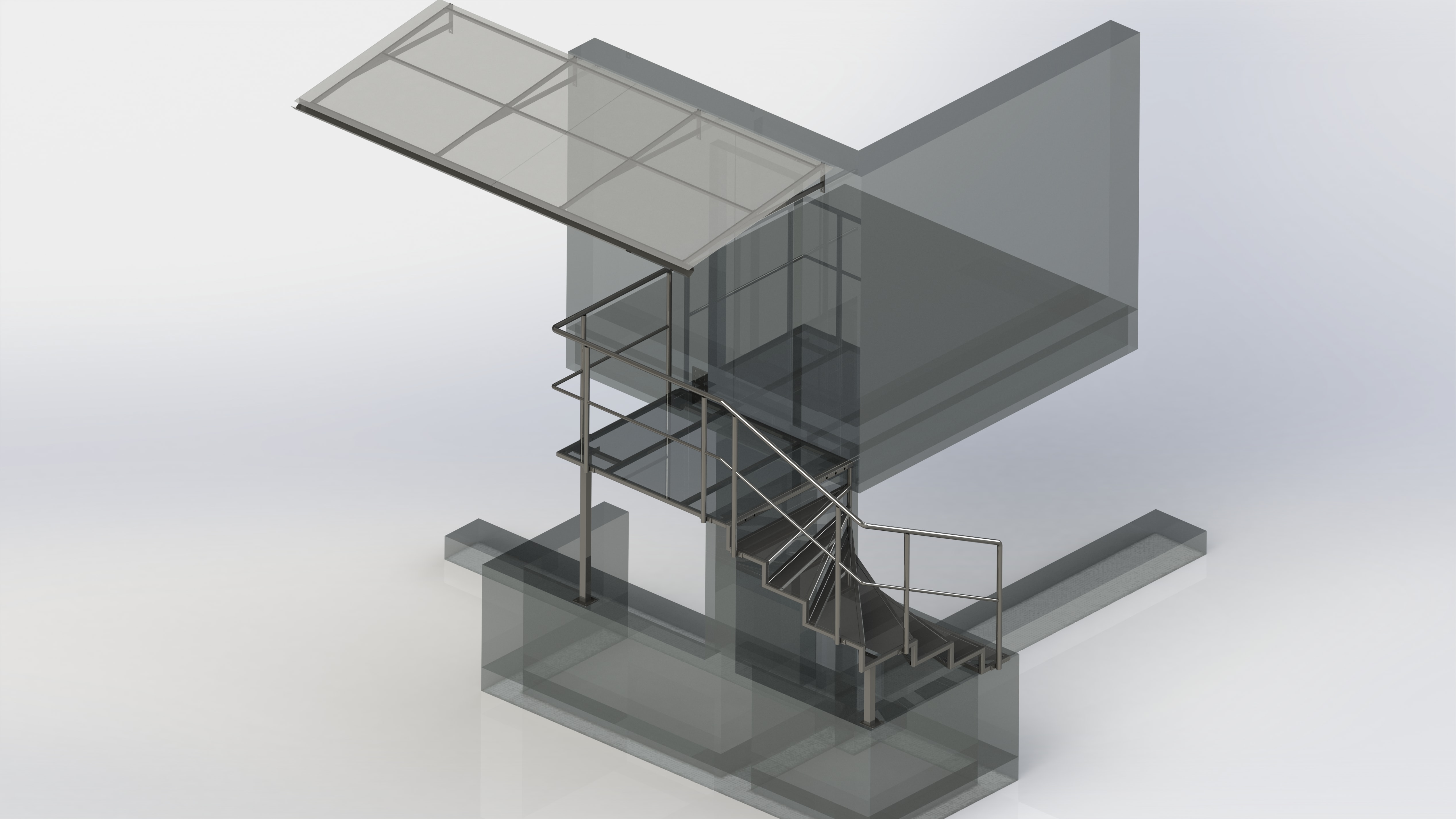 Ladder made from stainless steel, steps made from terrace boards. Canopy made from monopolikarbonata.