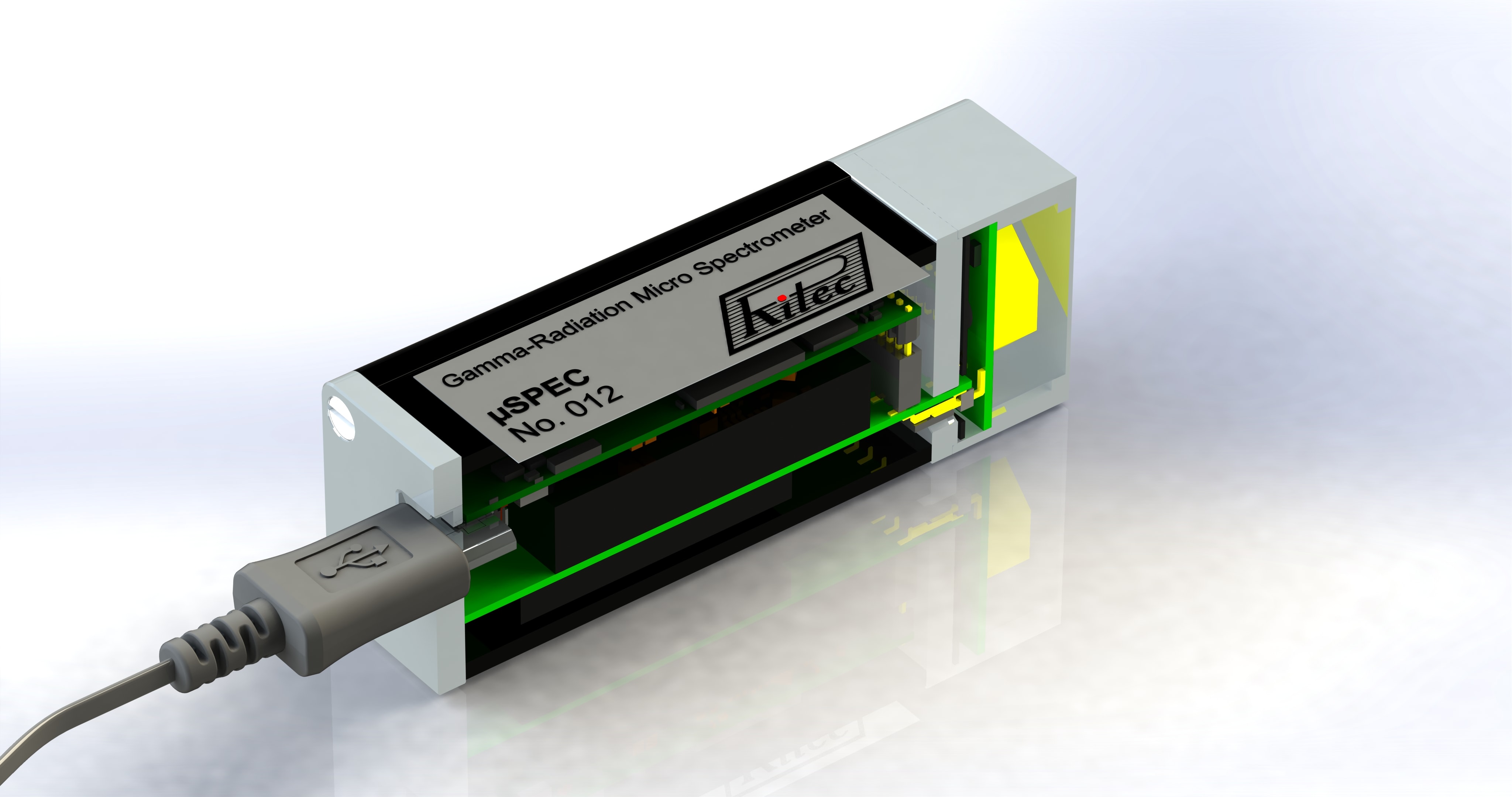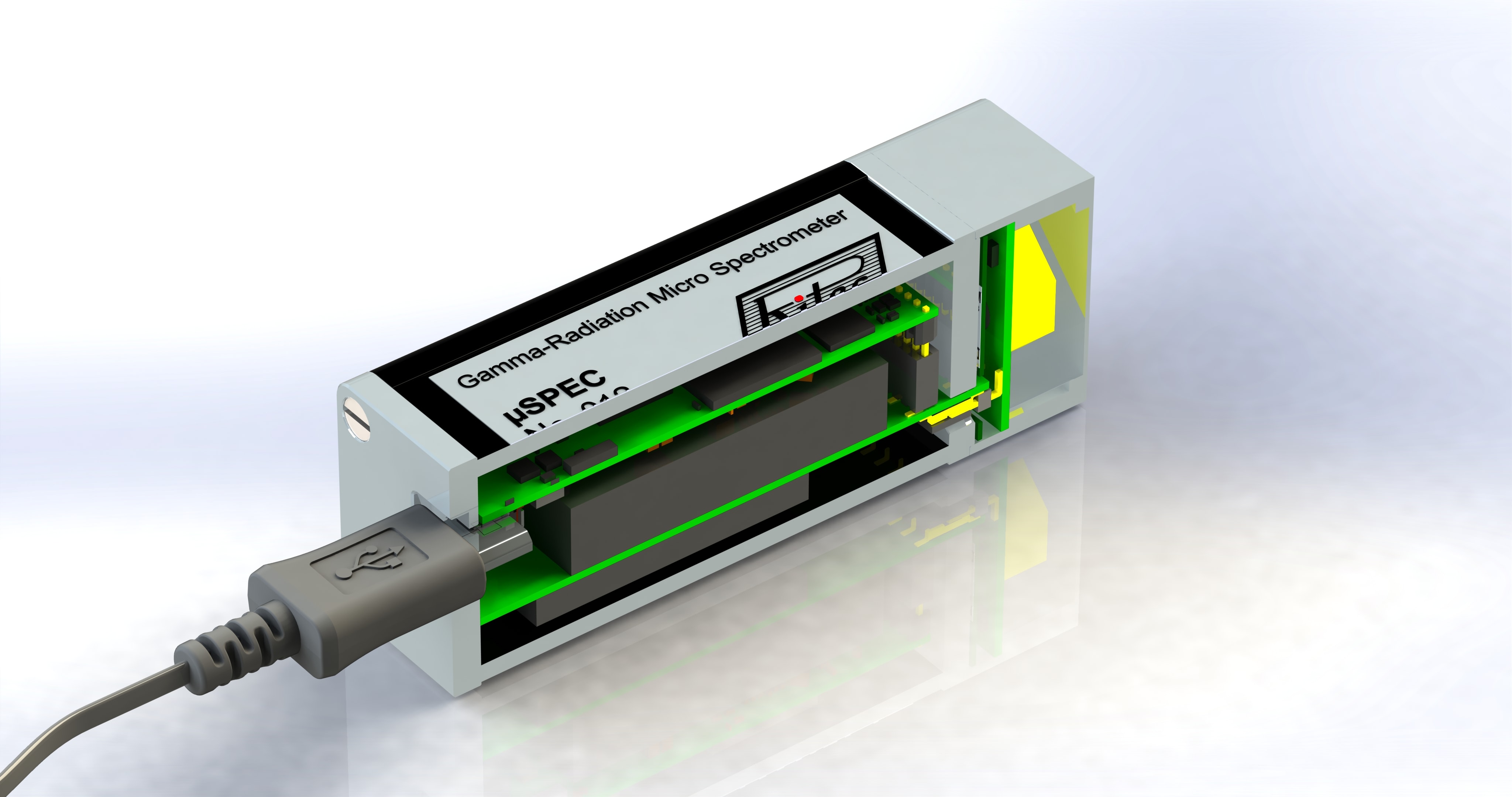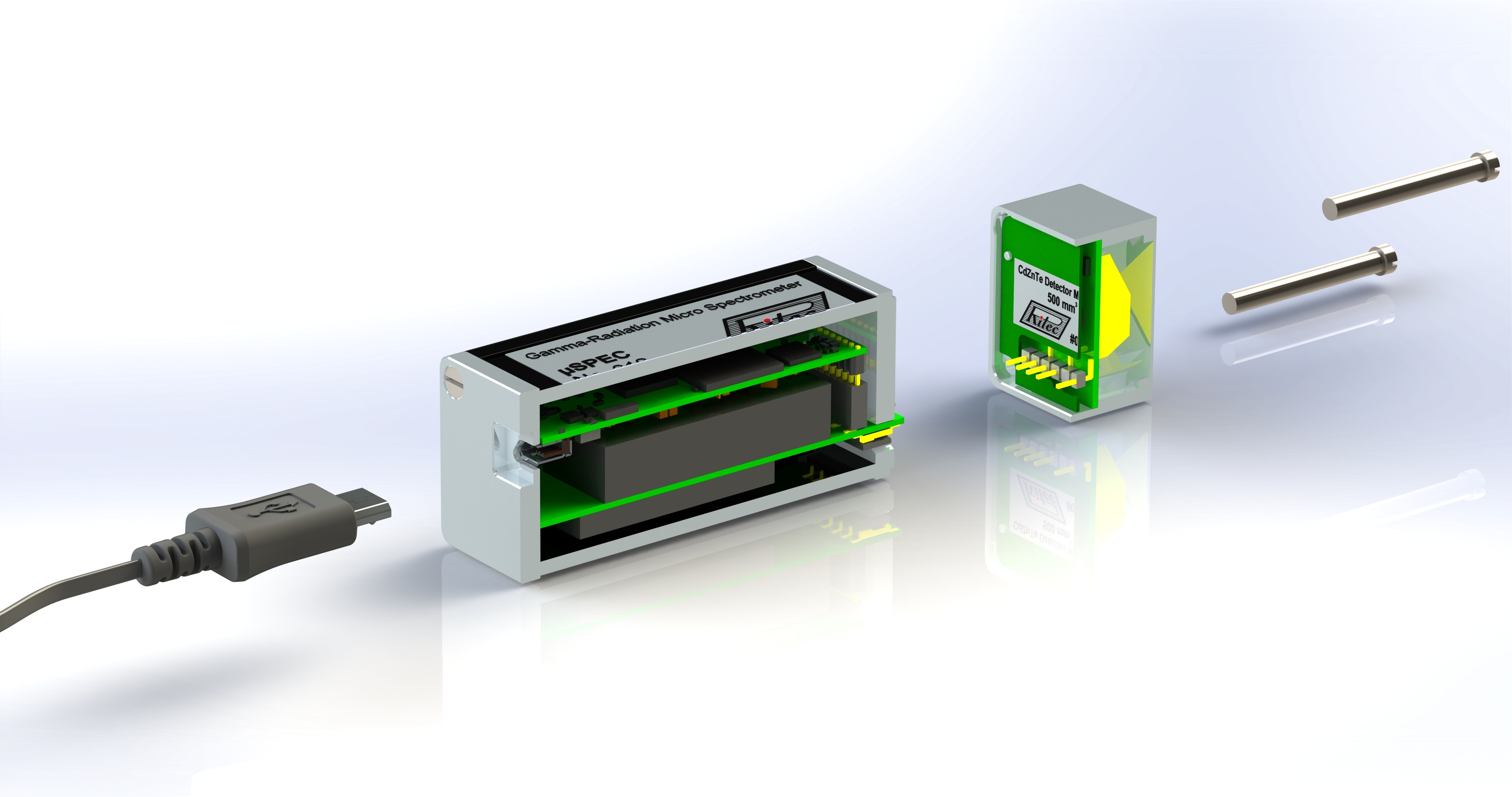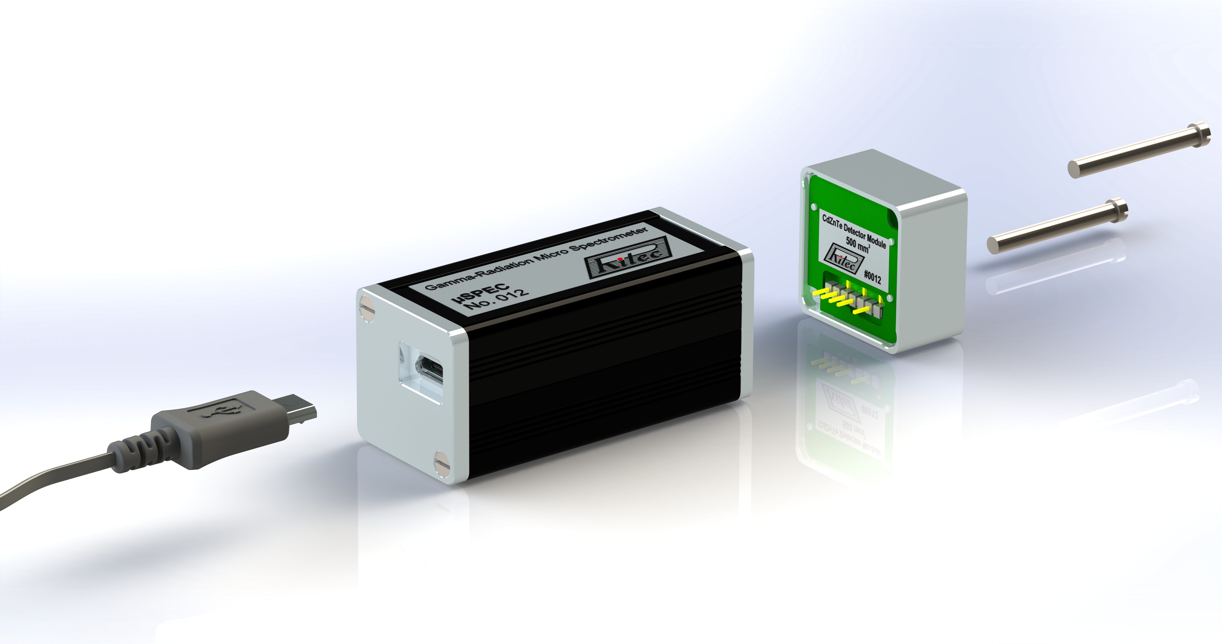 Gamma-Radiation Micro spectrometer μSPEC is a very compact high performance device with changeable CdZnTe detection modules. The μSPEC is based on application of high-sensitivity room temperature operating CdZnTe semiconductor detectors and miniature multi channel analyser MikroMCA527 (GBS Elektronik GmbH). The μSPEC allows measurements of gamma-radiation spectra and storing it for processing in a PC via USB port. The changeable detection modules contain the high quality CdZnTe quasi-hemispherical detector of volume 60 mm3, 500 mm3 or 1500 mm3.